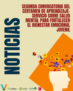 El Instituto Riojano de la Juventud (IRJ), a través del programa Carné Joven La Rioja, abre hoy, día 30, la segunda edición del Certamen de diseño de proyectos de Aprendizaje–Servicio (ApS) sobre salud mental, en colaboración con el Centro Riojano de Innovación Educativa (CRIE) y la Red de Aprendizaje–Servicio de La Rioja. Por segundo año consecutivo, esta iniciativa quiere impulsar propuestas que integren el currículo educativo con un servicio real a la comunidad, con el fin de fomentar el cuidado y el bienestar emocional de la juventud riojana.